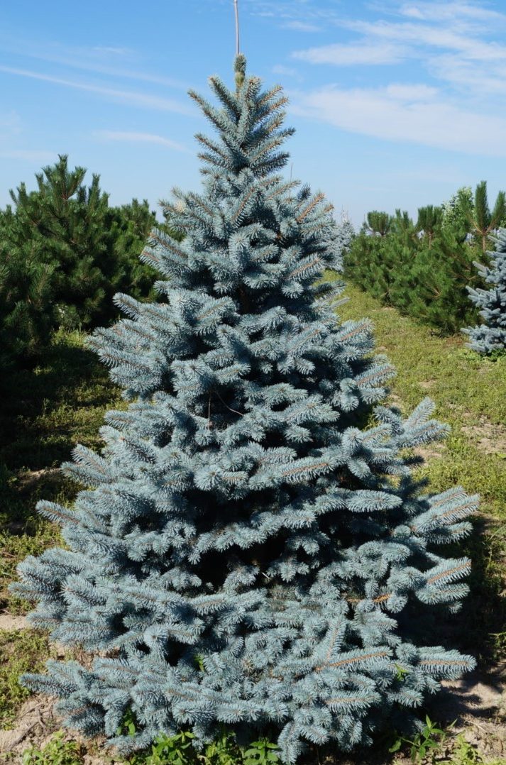 püramiidja kasvukujuga horisontaalselt asetsevatel okstel paiknevad tugevad jäigad sinised okkad